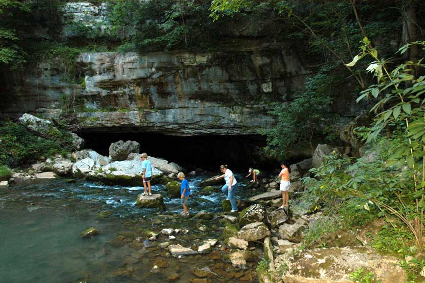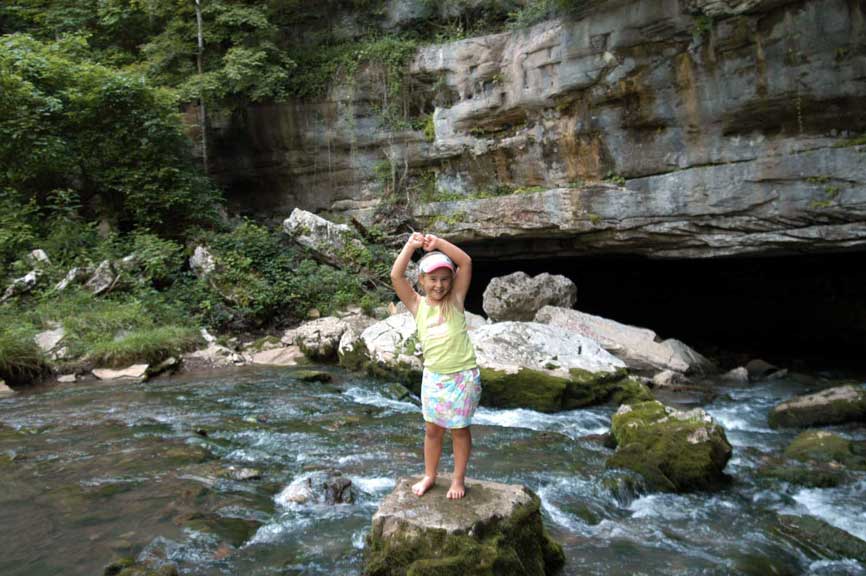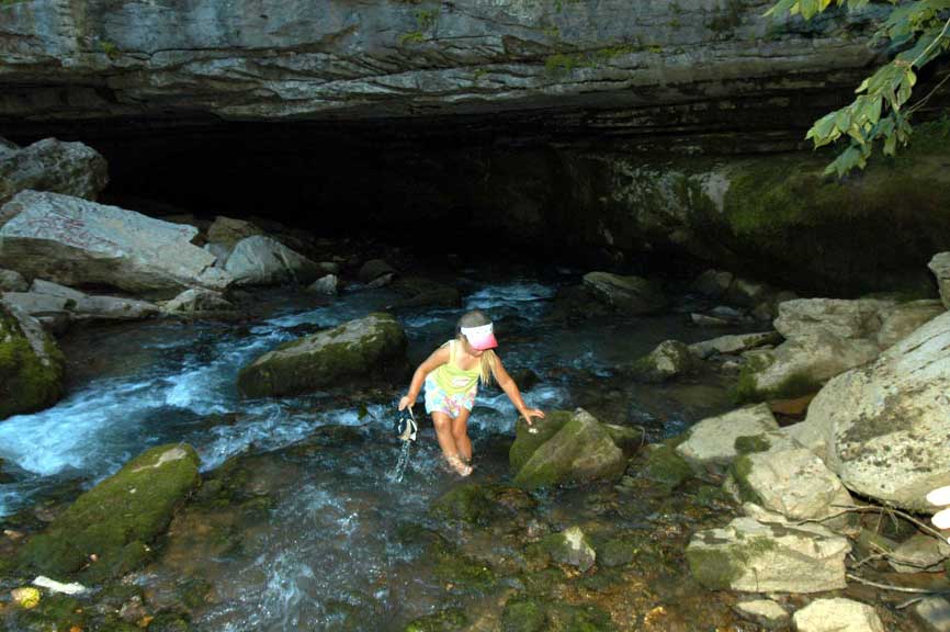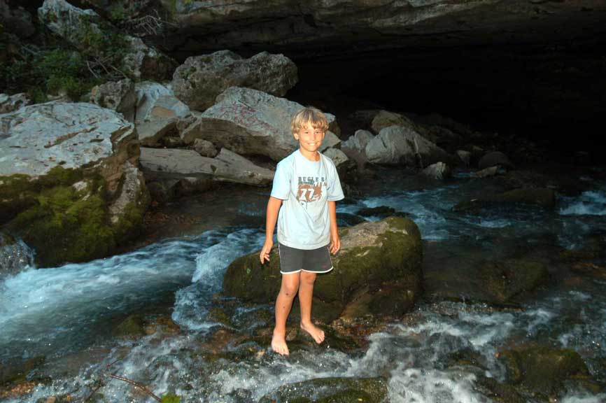 appears to your left, flowing out of a cave in a sheer rock