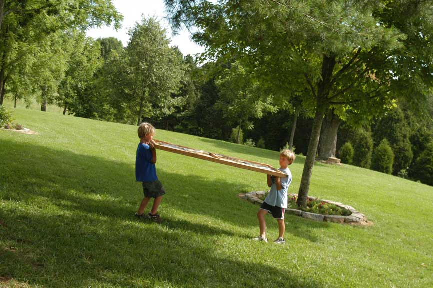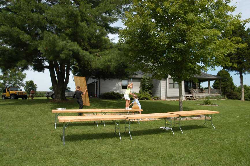 while the boys began folding legs and carrying them into